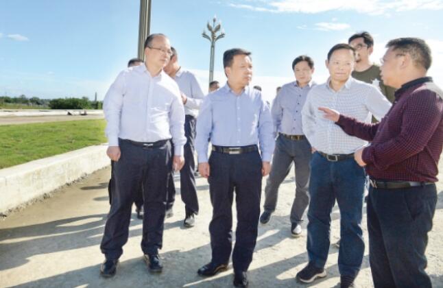 在三星堆试验段鸭子河大桥施工现场,工人们正在进行桥基作业。靳磊来到这里,详细听取了施工进度的汇报,并询问工程建设中遇到的困难。他强调,有关部门要加大协调力度,对项目建设中存在的困难和问题,逐条研究解决,确保按照时间节点加快实施建设;要严格落实监管责任,严把项目质量关,确保项目质量过硬。