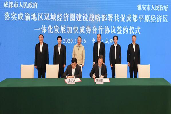 双方签署《成都市人民政府雅安市人民政府落实成渝地区双城经济圈建设战略部署 共促成都平原经济区一体化发展加快成势合作协议》和3个专项协议