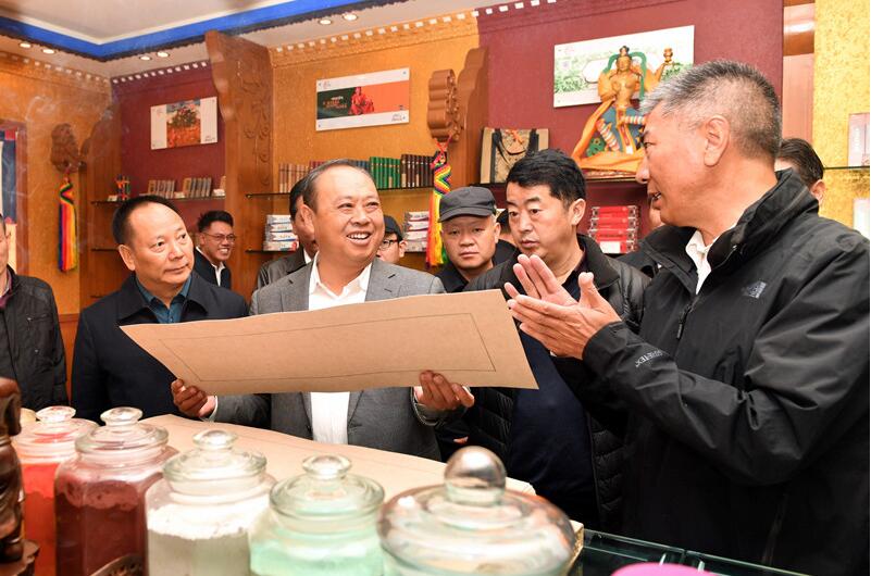 10月22日,阿坝州党政代表团在达孜县工业园区考察优格仓藏香公司运营情况。泽旺旦真摄
