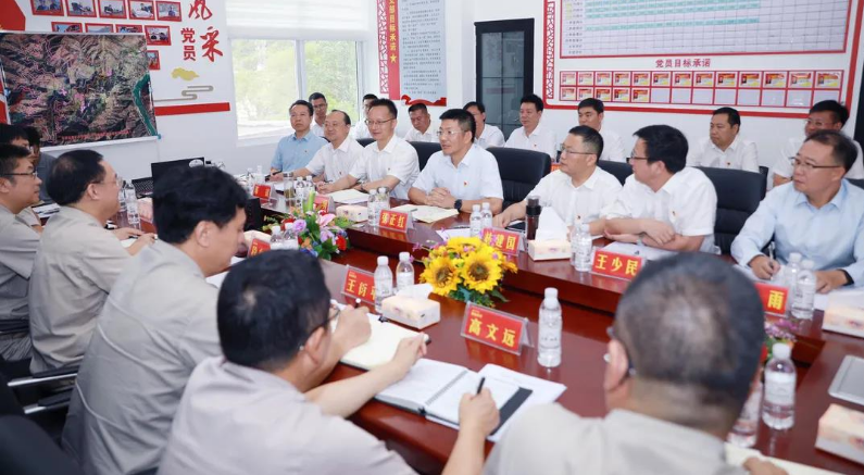 7月27日上午,攀枝花市委书记张正红与攀钢党委书记、董事长段向东等在中沟湾尾矿库工程项目部座谈交流。