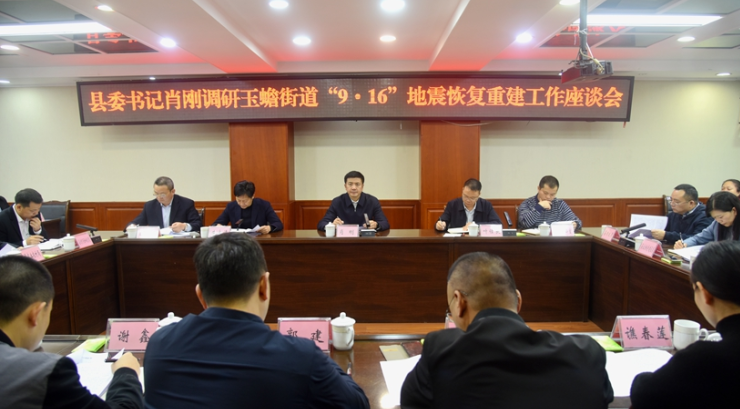 10月18日,泸县县委书记肖刚主持召开玉蟾街道“9·16”地震恢复重建工作座谈会,县委常委、常务副县长叶仕良,县委常委、统战部部长、县总工会主席朱大清参加会议。