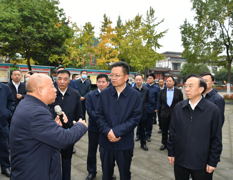 11月2日,凉山州委书记段毅君,州委副书记、州政府代理州长阿石拉比率凉山州党政代表团在成都市郫都区战旗村考察学习。记者 钟源 摄