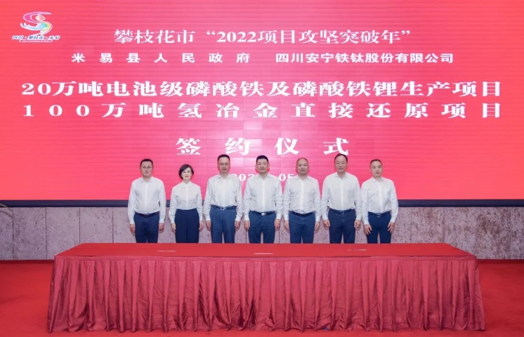 5月17日,安宁股份20万吨电池级磷酸铁及磷酸铁锂生产项目和100万吨氢冶金直接还原项目在米易签约落地。