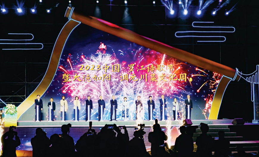 20时17分许,李文清宣布:2023中国·罗江诗歌节暨大德如阳·调元川菜文化周开幕。