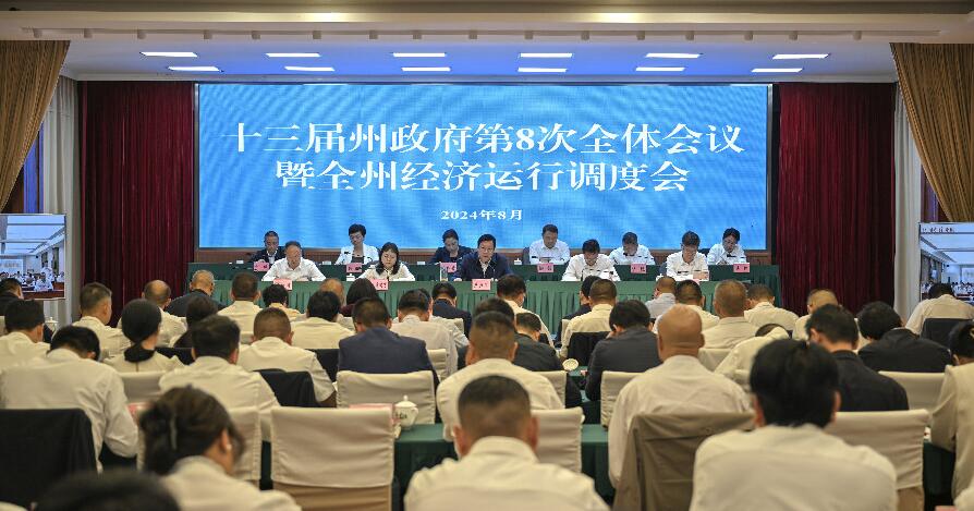 为深入学习贯彻党的二十届三中全会精神,全面落实中央、省、州近期重点工作安排部署,8月12日,十三届州人民政府召开第八次全体会议暨全州经济运行调度会,盘点上半年经济运行情况,安排部署下一步工作。州委副书记、州长罗振华主持会议并讲话。州政府副州长,州政府秘书长出席会议;州人大常委会副主任颁玛德吉、州政协副主席郭雄应邀出席。