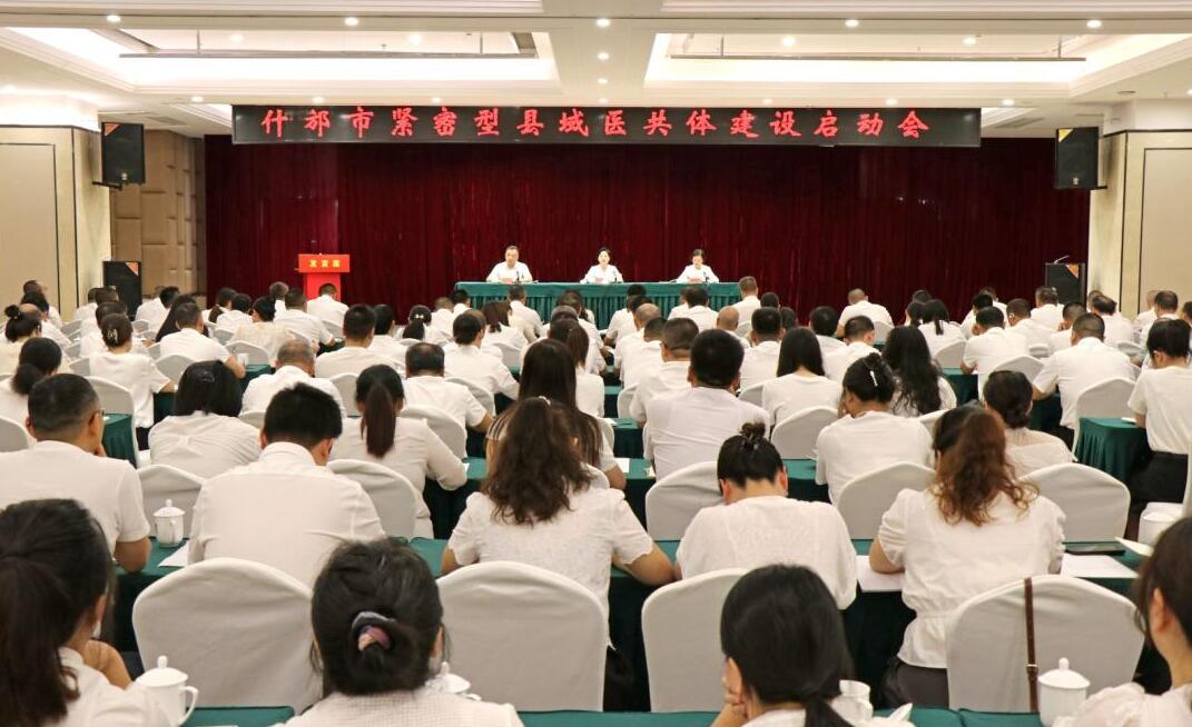 8月30日上午,什邡市召开紧密型县域医共体建设启动会。市委副书记、市长晏世莹出席会议并讲话。她强调,要深入学习贯彻习近平总书记关于健康中国建设的重要论述,全面落实党中央、国务院,省委、省政府和德阳市委、市政府关于推进紧密型县域医共体建设的决策部署,进一步增强工作责任感和紧迫感,聚焦短板弱项,全力攻坚突破,确保如期实现工作目标,为健康什邡建设和城乡融合发展筑牢坚实基础。