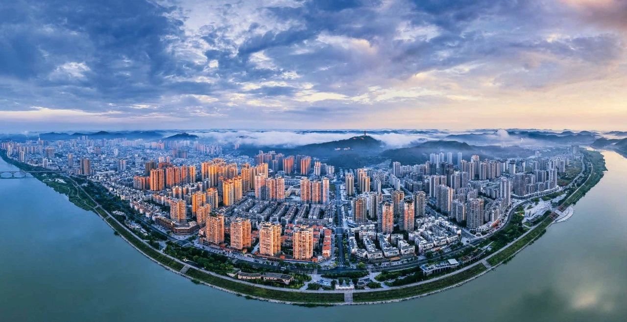 2023年,射洪地区生产总值再迈上新的百亿台阶、增长8.1%,增速居遂宁市第1位。在全省县域经济监测评价183个县(市、区)中排名第6位。今年上半年,实现地区生产总值增长6.9%。图为射洪市全景。
