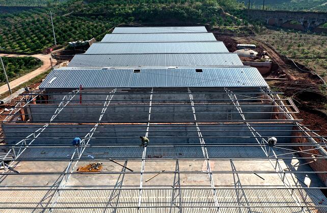 为了向黄建友和他这样的代养业主提供良好的种猪,作为“出货源”,慈航祖代种猪场正在火热建设中。4栋圈舍,生活区及其他相应的附属环保设施8栋,目前正在进行场房屋面盖顶的工序,力争在12月份投入生产。