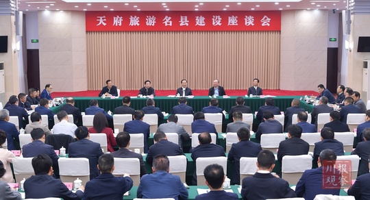 座谈会上,文化和旅游厅汇报推进天府旅游名县建设总体情况,首批天府旅游名县青羊区、都江堰市、剑阁县、峨眉山市、阆中市、长宁县、广安区、汶川县、稻城县、西昌市和天府旅游名县候选县广汉市、青川县作汇报发言。