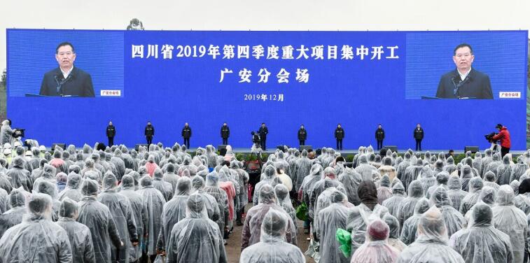 12月18日上午,在广安市广安区官盛新区广安·南浔东西部扶贫协作重大产业基础设施项目现场,广安市作为四川省2019年第四季度重大项目集中开工的分会场之一,集中开工了广安玻璃制品产业园、万头湖羊养殖基地等66个重大项目,总投资163.6亿元,涉及基础设施建设、产业发展、民生及社会事业等多个领域。
