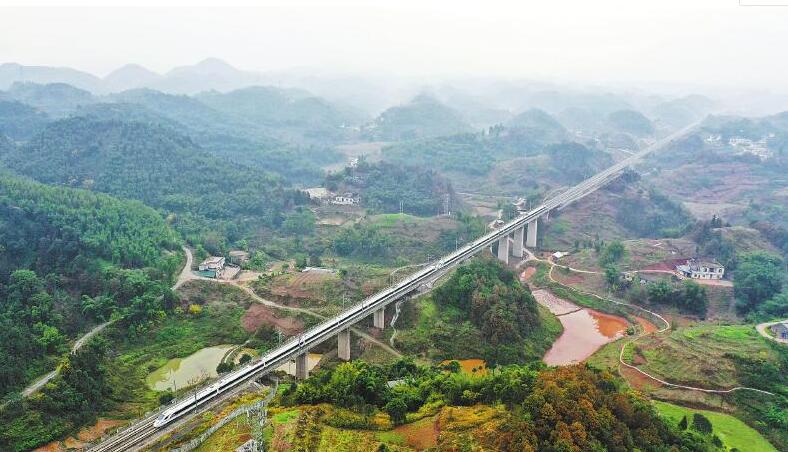 12月16日,成贵高铁全线开通运营。这是成贵高铁列车行驶在宜宾市兴文县境内。(记者 何海洋)
