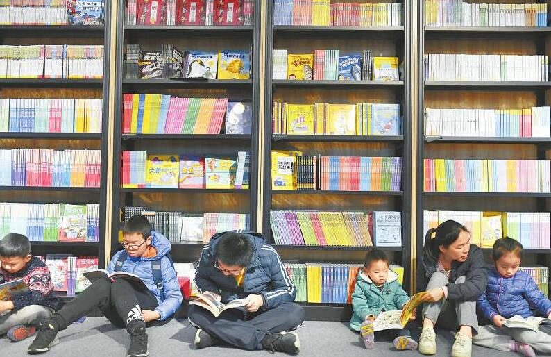 2019天府书展上,家长和孩子们席地而坐阅读书籍。记者李向雨摄