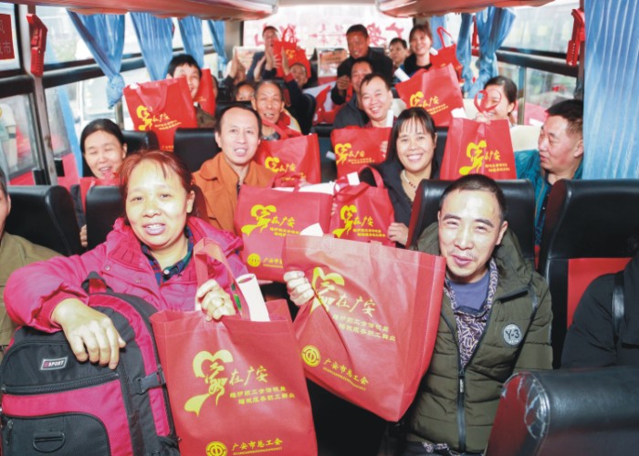 据了解,广安常年有160余万人在外务工,其中在广东务工人员有32.6万人。此次乘坐专列的1800名农民工中,既有技术工人、销售员、服务员,也有环卫工、建筑工人、保安等。此外,广安还举行了迎接返乡农民工见面会,广安市相关领导向农民工介绍了广安市支持农民工返乡创业的政策,希望农民工朋友能够在家乡就业创业。