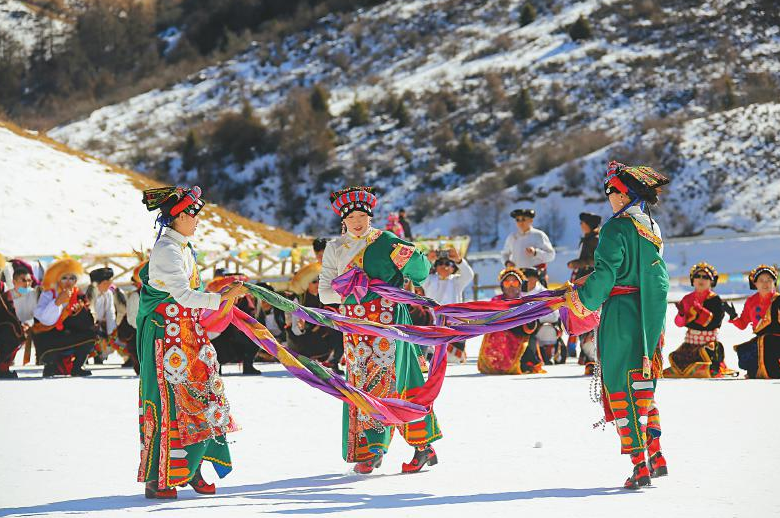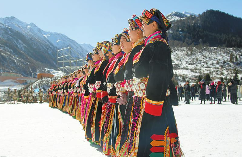 ①2019年12月31日,理县米亚罗举行若木纽节,当地藏族群众载歌载舞,欢庆丰收。