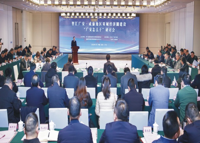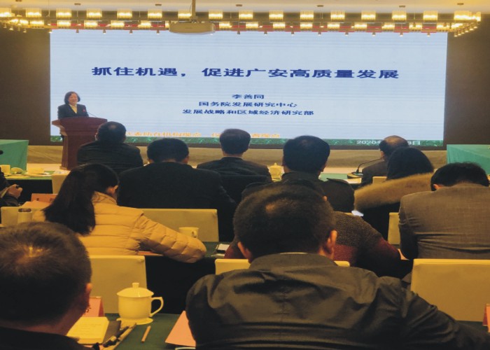 抢抓成渝地区双城经济圈建设机遇,1月19日,由四川省委省政府决策咨询委员会、国家发展改革委国际合作中心主办,广安市委市政府承办的智汇广安·成渝地区双城经济圈建设“广安怎么干”研讨会在广安举行,来自中央、四川省和重庆市的众多知名专家学者齐聚广安,为广安找准融入成渝地区双城经济圈建设方向和战略路径、实现高质量发展献计献策。