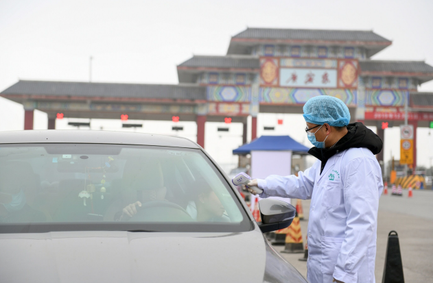 “您好!请您把车窗打开,配合我们进行体温检测。”1月31日上午,在G42沪蓉高速广安收费站出口,现场执勤的交警拦停刚下高速的车辆,身着防护服的工作人员逐一对车辆里的人员进行体温检测,并现场做好分类登记、全面监测等相关工作。