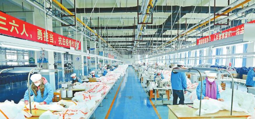 ①2月5日下午,际华三五三六实业有限公司新启动的生产线上,工人们正在生产防护服。记者祖明远摄