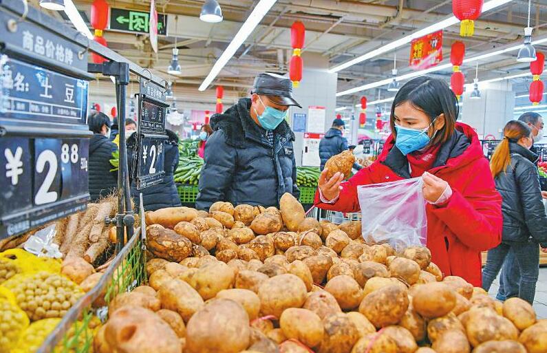2月6日,广安市广安区官盛镇渡口村第一书记胡雪梅在城区超市为村民代购生活用品。张国盛摄(视觉四川)