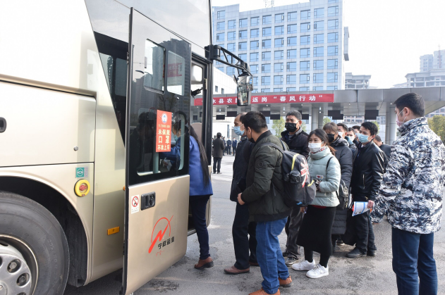 2月12日上午10时整,在广安市邻水县汽车客运中心,搭乘着81名邻水节后首批集中到外地返岗人员的3辆“春风行动”返岗专车,准时从这里出发,将开往广东惠州。