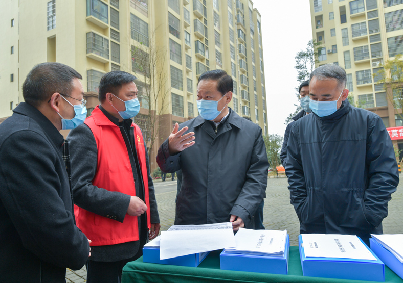 2月12日,彭清华书记到双流区永安镇凤凰家园小区调研社区疫情防控工作,在小区门口检测体温后进入小区。