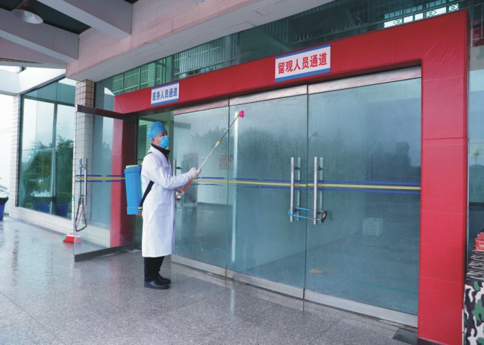 作为现场总负责人,文华不仅克服了疾病带来的头痛、眩晕,还带领团队快速的投入到留观人员的体温检测、三餐配送、垃圾处理,留观人员、医务人员的心理交流与辅导,公共区域消毒等管理服务工作中来。