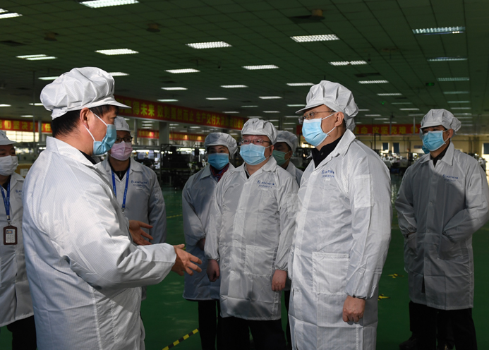 尹力前往际华三五三六实业有限公司,调研防护服等疫情防控物资生产情况。他说,医疗防护物资是打赢疫情防控阻击战的重要保障,企业要开足马力加紧生产,同时要坚持以产品质量为生命线,强化技术装备创新,优化生产工艺流程,保证产品质量安全可靠,相关部门要组织专家加强技术指导,地方要强化要素保障,帮助企业解决生产遇到的具体困难问题,努力为全省乃至全国疫情防控作贡献。在京东方光电科技有限公司和四川九洲电器集团,尹力详细了解企业落实疫情防控措施和复工复产情况,鼓励企业根据疫情发展和整体防控要求,不断完善和优化管理工作,把防控措施做得更精准更到位,让企业运行更高效成本更低。地方政府要突出抓好稳就业、稳企业的工作,组织身体健康的群众及时返岗就业,更加主动服务企业复工复产。他强调,高科技企业要在疫情防控中发挥科技优势作用,要对标社会管理需要和群众生活需求,组织研发生产对路产品,增强市场竞争力和占有率。