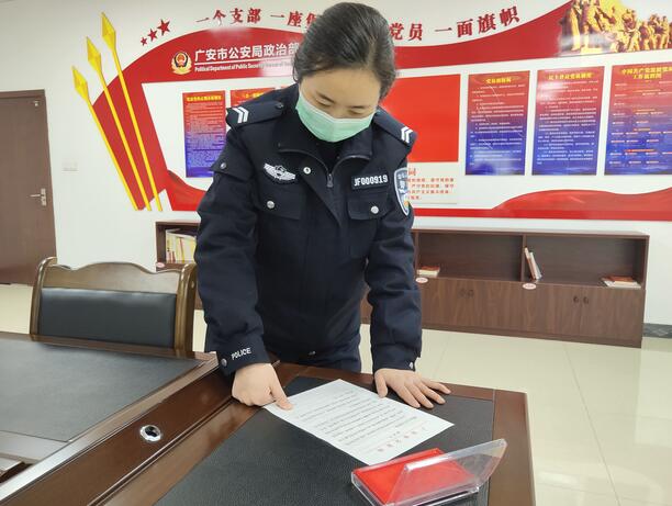 她是一个战斗在宣传一线的工作者,也是一名冲锋陷阵的青年突击队队员,她在向党组织递交入党申请书的同时,还专门递交了请战书,她就是广安市公安局宣传处辅警蔡勤。