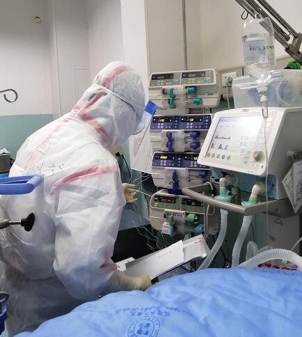 护理部再次集结、增派6名最优秀的护理人员,支援新冠肺炎病区对该例危重症患者的救治、护理工作。