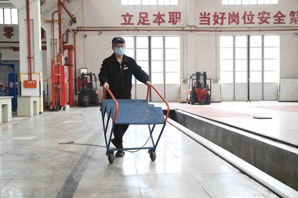 虽然停产两个多月,但检修车间一刻也没有闲着。车间党总支书记邹为民介绍,在疫情初期,面对停工后职工分散的情况,车间迅速成立防疫工作小组,责成车间管理人员及班组工长实时掌握职工每日基本动态,落实疫情上报工作,人员普查率达到了100%。为进一步确保复工复产顺利,在2月中旬起,车间就提前组织对全年段修生产结构进行优化调整,对全部生产设施进行了清点、整理、归位、对接、调试和验收。目前,检修车间开工后第一轮架车已提前摆放到位。
