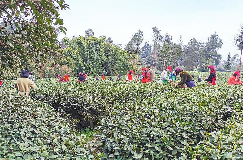 3月9日,雅安市雨城区、名山区青翠的茶山上,茶农们身挎茶篓,迎着和煦的春风,采摘着春日里醉人的“清新”。
