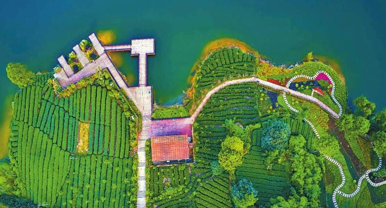 雅安名山区解放乡银木村,蜿蜒起伏的茶园绿意盎然。黄刚摄(视觉四川资料图片)
