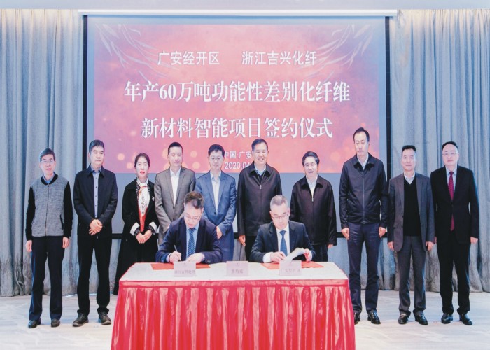 4月21日,广安经开区与来自浙江省湖州市的浙江吉兴化纤有限公司,成功签约年产60万吨功能性差别化纤维新材料智能化生产项目,这是广安从浙江成功引进的首个化纤产业项目,也拉开了浙江化纤产业向广安产业转移的序幕。