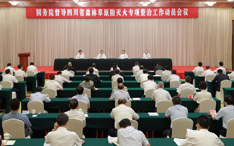 为深入贯彻习近平总书记重要指示精神,国务院四川森林草原防灭火专项整治督导组进驻四川省开展督导工作。5月7日,督导动员会在成都召开,督导组组长、应急管理部党委书记黄明作动员讲话,传达习近平总书记重要指示精神和李克强总理等中央领导同志重要批示要求,通报专项整治督导工作安排,对做好专项整治督导工作提出要求。四川省委书记彭清华讲话,省委副书记、省长尹力主持会议。督导组常务副组长付建华,副组长戴建国、李树铭、彭小国,四川省委副书记邓小刚出席。