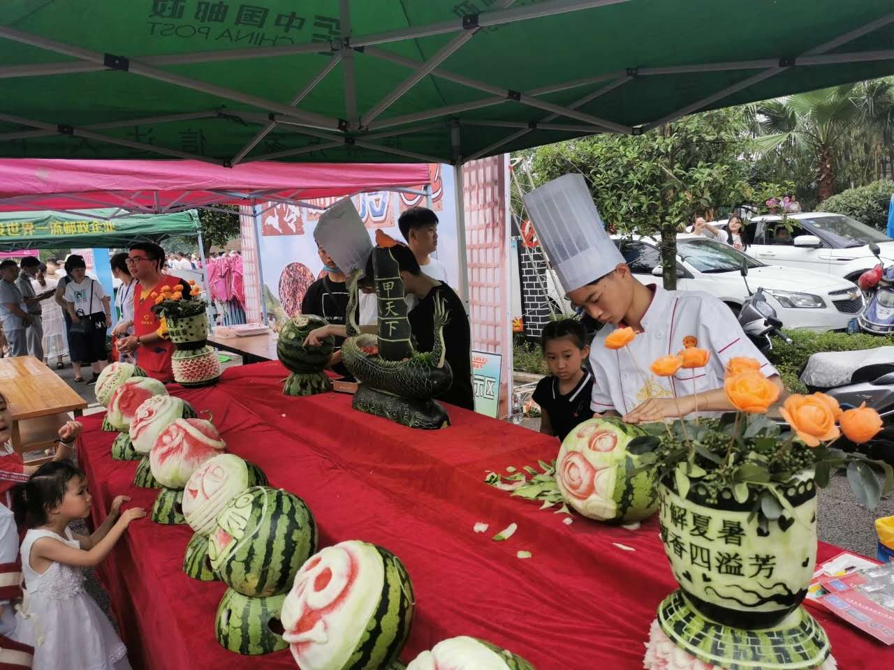 此外,本届西瓜节中,主办方在往届的基础上,还新增了特色农产品展销,设置了二十二个展销位,集中展销包括九洪西瓜、九叶青花椒、太源井晒醋、徐氏雕刻、黄市草编、永安草雕、以及龙虾、葡萄、冷吃系列等在内的全区特色农产品。