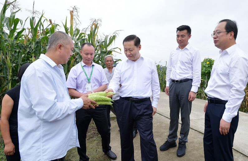 7月22日,省委书记彭清华到三台县芦溪镇涪城村蹲点调研,了解农村产业发展情况。