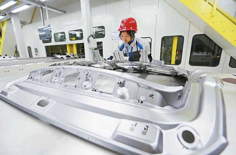 工人正在对冲压产品进行检测。兰锋摄(视觉四川资料图片)