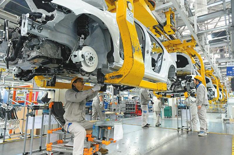 成都市龙泉驿区的一汽-大众成都分公司总装车间,工作人员正在忙碌作业。记者李向雨摄(视觉四川资料图片)