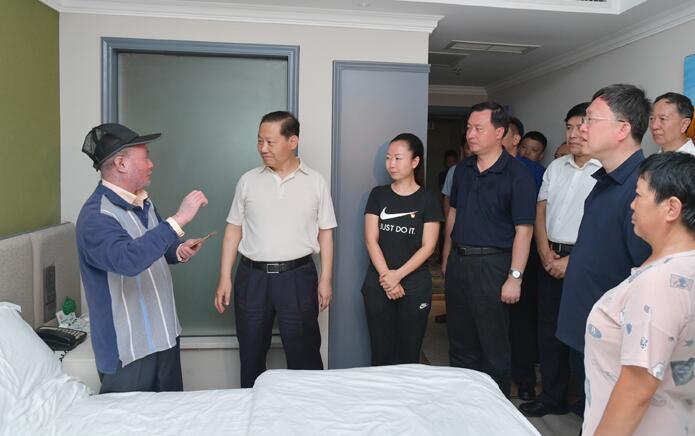 8月19日,省委书记彭清华看望慰问安置在酒店的受灾群众。