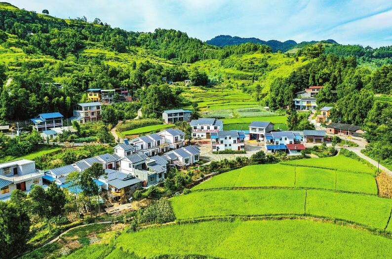 开江县程家沟村新村聚集点,村前就是高山晚熟稻米基地。