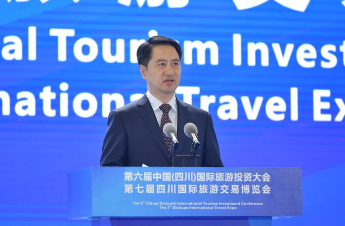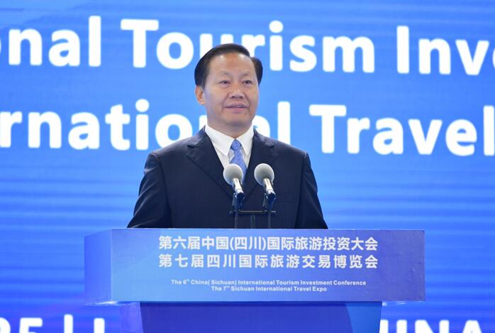 尹力在致辞中代表四川省委省政府和四川人民,向线上线下的嘉宾和朋友表示欢迎。他说,四川历史文化深厚,山川秀美辽阔,民族风情浓郁,发展文化旅游潜力巨大。四川省委省政府深入学习贯彻习近平新时代中国特色社会主义思想和习近平总书记对四川工作系列重要指示精神,围绕建设文化强省旅游强省和世界重要旅游目的地,把项目储备和招商引资作为推动文化旅游发展的重要抓手,谋划了一批标志性引领性文旅产业项目,吸引了各类资本积极投资文旅产业,加快将资源优势转化为发展优势。当前,四川正深度参与“一带一路”建设、长江经济带发展和新时代西部大开发,大力推动成渝地区双城经济圈建设,助推形成以国内大循环为主体、国内国际双循环相互促进的新发展格局。我们将进一步加强开放交流合作,顺应旅游消费提质转型升级新趋势,聚集海内外优势文化旅游资源,加快推进重点文旅项目建设,着力构建旅游产品新业态、新模式、新体系,全力做强“天府旅游名县”等系列文旅品牌,持续推进旅游业高质量发展。欢迎大家多来四川走走看看,体验天府之国的独特魅力和蓬勃生机。期待各位企业家朋友积极参与到四川新一轮旅游大发展热潮中,四川将坚定不移支持企业在川发展,让大家安心创业、舒心生活,开创互利共赢新未来。