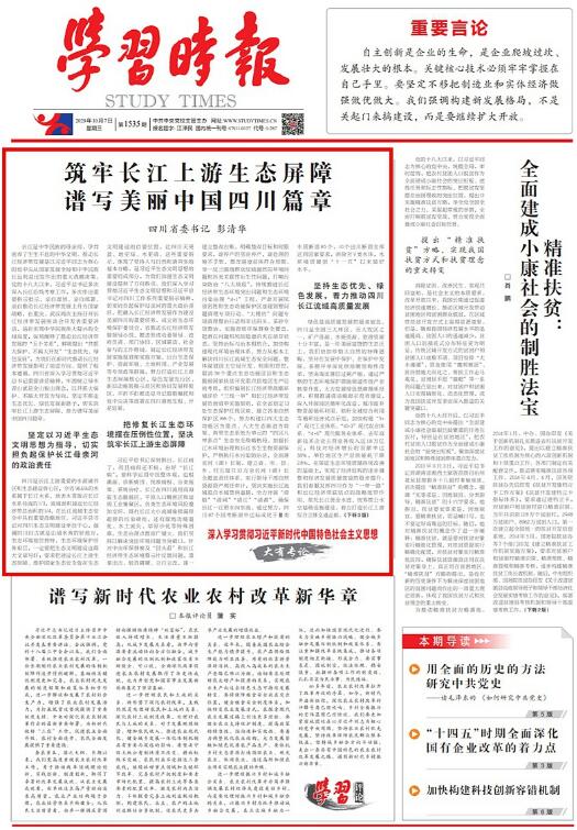 【编者按】10月7日出版的《学习时报》发表中共四川省委书记彭清华的署名文章《筑牢长江上游生态屏障 谱写美丽中国四川篇章》。全文如下: