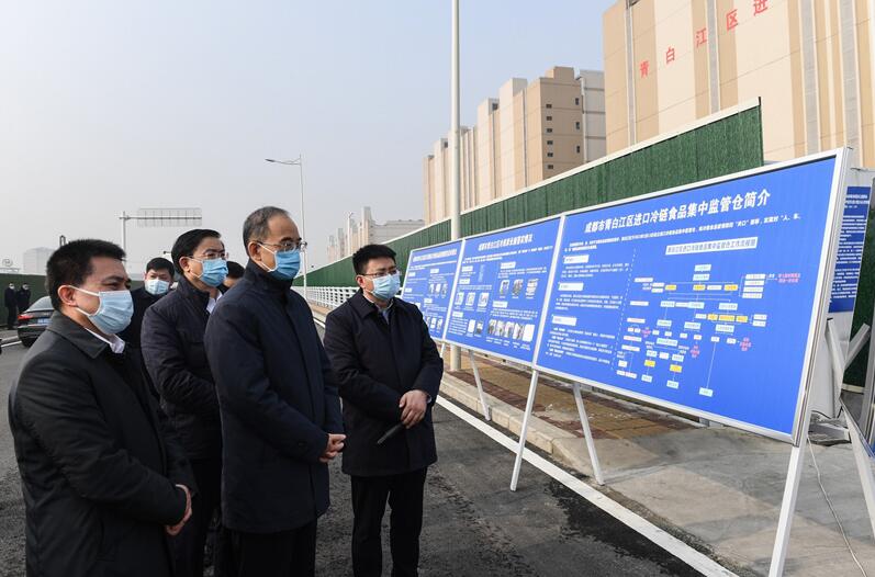 仪式结束后,黄强赴成都国际铁路港展示中心调研中欧班列运行发展情况,强调要坚持中高端市场定位,加强川渝协同合作共建,进一步发挥对本土产业的集成带动作用。在青白江进口冷链食品集中监管仓,黄强详细了解了冷链物流相关工作,强调在春节临近货物量增长较快形势下,要一刻也不松懈地做好冷链物流疫情常态化防控工作,坚持疏堵结合,严厉打击走私冷链食品等违法行为,坚决取缔地下“黑冷库”,做好货车司机服务保障,并针对一线运行中发现的问题持续优化完善“四川天府健康通”系统。