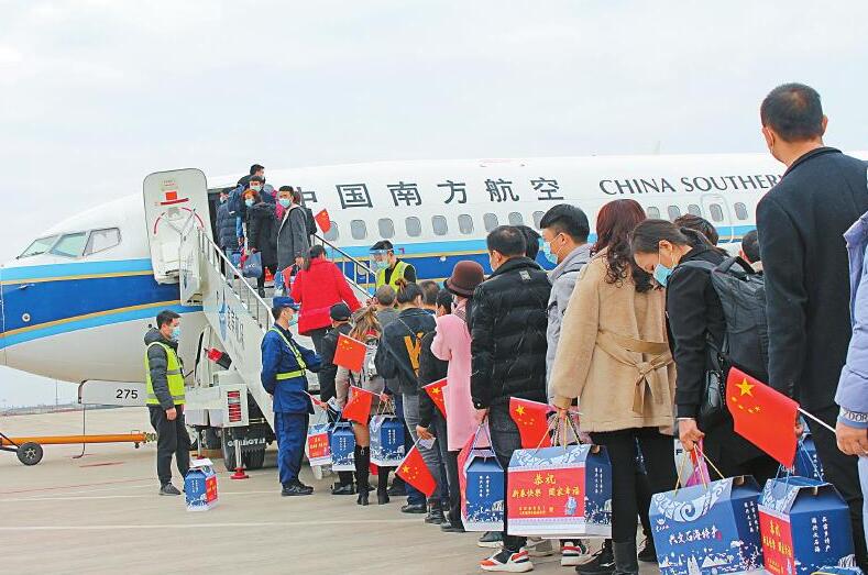 2月17日,宜宾100名农民工坐飞机返岗复工。这是我省春节后出发的首架川籍农民工返岗包机。宜宾市人社局供图