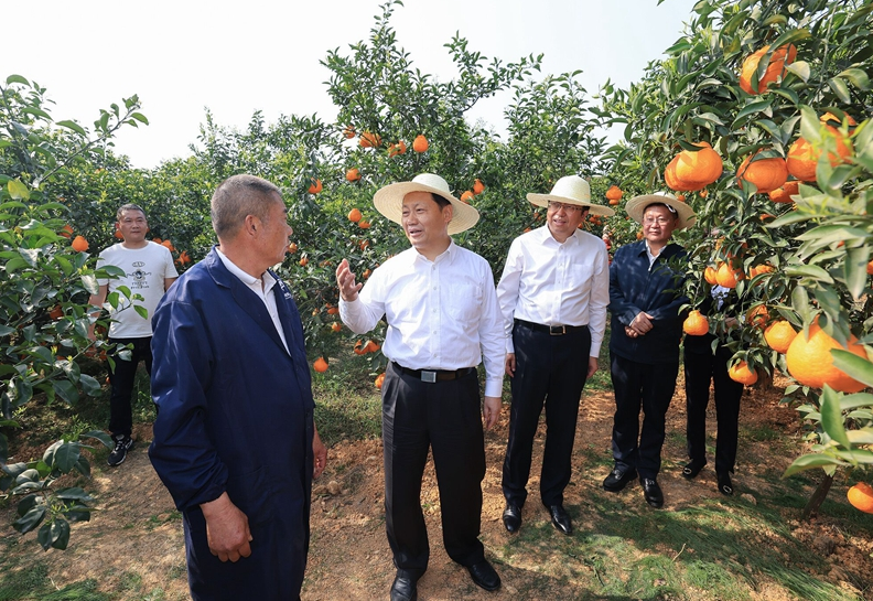 仲春好时节,农忙正当时。东坡区太和镇金光村好味稻专业合作社,今年计划育秧苗400亩,可播种稻田4万余亩。彭清华来到育秧基地,仔细察看村民使用机械育秧的过程,步入育秧田与干部群众亲切交谈,关切询问薄膜育秧技术要点、优质稻种产量、种粮收入等情况。得知当地通过推广鱼塘浮板种稻、果园套种等方式,粮食种植面积将稳中有增,彭清华十分高兴。他说,抓好春耕生产对实现全年粮食丰产丰收至关重要。要抢抓农时推进春耕备耕,加强农资农机供应保障和田间管理指导,加大优质种质资源和现代农机装备的推广使用,采取“长牙齿”的硬措施严守耕地保护红线,确保粮食安全和重要农产品有效供给。丹棱县晚熟柑橘种植面积16万亩,“不知火”“春见”等柑橘品种挂满枝头。在齐乐镇丹橙现代农业园区,彭清华走进果园与果农一起采摘果实,询问了解品种特性、亩均产量、品牌打造、市场行情等情况。他说,一个优良品种成就一个产业、致富一方百姓,充分说明选育优质特色品种的重要性。要加强与科研院所合作,做好果树新品种培育,因地制宜推广应用管护新技术,努力为农民带来更多致富果、幸福果。