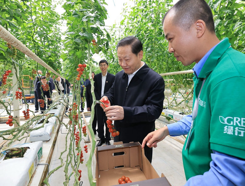 “抓项目”是今年全省的一项重点工作。彭清华来到东坡区甘眉工业园通威高效晶硅太阳能电池生产基地,走进电池生产车间,察看全自动生产线运行情况,仔细询问产品技术革新、制造工艺提升、产品应用及销售等情况。他勉励企业坚定不移走创新驱动发展之路,发挥好行业龙头引领作用,吸引带动更多新能源产业上下游企业集聚发展,为实现碳达峰碳中和目标贡献力量。西南智慧农业园是由东坡区与中国建材集团合作,共同打造的现代农业科技产业园,园区番茄每平方米产量可达75公斤、是传统种植的6倍。彭清华饶有兴致地察看有机番茄无土栽培、果实采摘、智能化包装等。他指出,今天的项目就是明天的经济结构,抓项目对于推动经济发展质量变革、效率变革、动力变革意义重大。要牢牢牵住项目投资这个“牛鼻子”,围绕推动成渝地区双城经济圈建设、加快成眉同城化发展,聚焦工业“5+1”、农业“10+3”、服务业“4+6”等重点领域,引进一批产业协作强、科技含量高、经济效益优的大项目好项目,强化要素保障,推动早日建成达效,更好惠及群众、支撑发展。