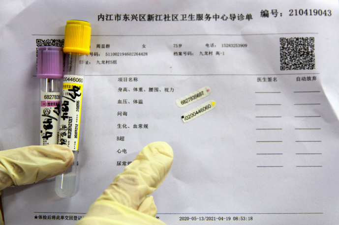 在内江市东兴区新江社区卫生服务中心,体检人员一“码”完成额全部检查项目