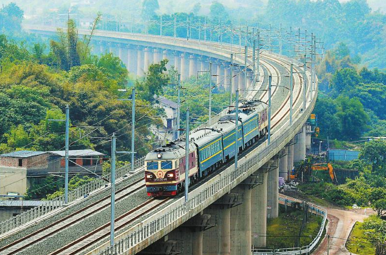 据中国铁路成都局集团公司介绍,高速联动的城际铁路网,将为推进成渝地区双城经济圈建设提供重要支撑。目前纳入“十四五”规划的项目中,向东由成渝中线高铁、成达万高铁形成高标准沿江高铁通道,向南由渝昆铁路、成自宜高铁完善西部陆海新通道,向北由渝西高铁、成都至西宁铁路、成兰铁路构建对接丝绸之路经济带的国际大通道。新建绵泸高铁从绵阳经内江、自贡抵达泸州,将联通成渝地区的南北中轴。