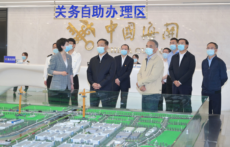 调研中,彭清华来到成都高新综合保税区B区自助服务大厅,与工作人员和办理业务的企业人员亲切交谈,详细了解综保区建设布局、企业招引、业务办理、服务保障机制创新及成都市开放口岸建设情况。在成都海关监控指挥中心、国门安全展厅,彭清华察看了解海关运用信息技术优化口岸监管模式、提升通关便利化水平、开展口岸疫情防控和种猪隔离检疫及加强执法协作、提高安防管控能力等工作。