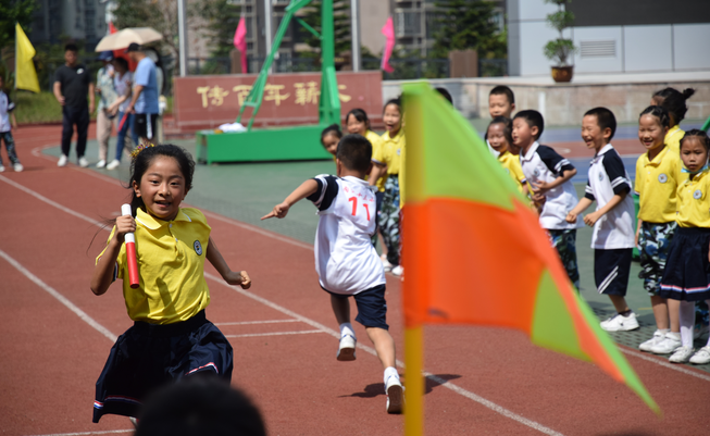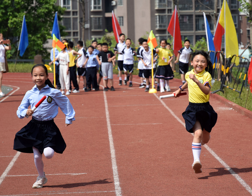 在内江市第十三小学,孩子们正在进行接力赛跑