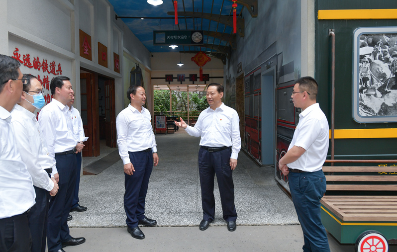 5月31日,省委书记彭清华来到位于乐山市金口河区永和镇的成昆铁路关村坝站,在修建于站旁半山腰的铁道兵博物馆调研,详细了解铁道兵修筑成昆铁路的艰辛岁月和丰功伟绩,听取乐山市和金口河区开展党史学习教育及“我为群众办实事”实践活动情况汇报。